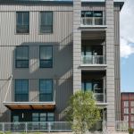 Now, sky bridges stripped of stucco call to mind the former mill’s connective tissue. Hoistways carry on as decks. And existing window patterns were replicated on new walls covered in textured metal siding. “We didn’t want to create historic-looking walls,” Ludwig says. “We weren’t going to get involved in recreating some historic scene.”