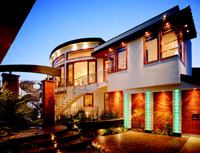Leave it to passionate art aficionados to take the concept of weekend beach house to the level of museum and sculpture garden. While their Newport Beach, Calif., getaway was under construction, the owners were able to buy the property next door. This gave them the rare chance to add a pool and spa to the plans. But even with two lots, a 5,200-square-foot main house plus 3,200-square-foot guesthouse left only 25 feet in between for outdoor fun. Architect Michael Kollin used serpentine glass and stucco walls on both buildings to produce a long and winding pool plaza whose varied nooks and crannies reveal themselves only as people wander through the space. “Our goal,” says Kollin, “was that once you walked into the courtyard, there was always something different and interesting to see.”