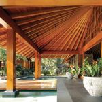Unlike most houses, which feature gardens and outdoor spaces around their perimeters, this project seems more like a garden with a series of pavilion structures inserted within it. To exploit the location and the climate, the architects designed the structures to be open with moveable panels that permit breezes, views, and light. Interior bathroom enclosures, for example, open to exterior shower gardens and all of the structures allow views to the exterior.