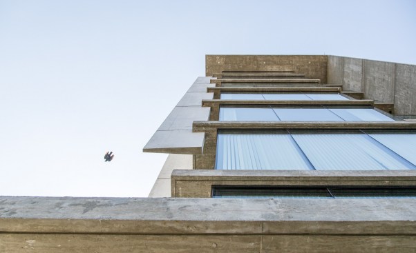 To pay homage to the historical importance of the automobile, the building utilizes symbolic screening and fins similar to automobile grilles. The lower two-story element has a privacy screen for the two units’ patios, and the upper mass is lined with cast-in-place vertical fins, both mimicking grilles of the ’20s and ’30s. The east-facing fins reflect morning light, reducing heat gain and increasing natural balanced lighting, which contributes to the building’s highly efficient energy use.