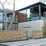 The spacious 8,000-square-foot home has a decidedly Japanese influence with low horizontal planes and a natural palette that creates an interplay of textures. The structural metal framing is left exposed while trowel stucco and stained cedar siding add warmth. On the interior, cedar, colored concrete, walnut, stainless steel, natural stone, and stained white oak provide a rich but muted feel.