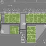 As part of its green strategy, Swatt Architects first deconstructed a brick factory that was located on the site and recycled 95 percent of the waste. In its place, the team designed five residential buildings with single-loaded circulation to allow daylight from at least two sides of almost every unit. The buildings, which house a combination of flats, town-homes, and lofts (62 units in all), are clustered to create an outdoor courtyard. Underground structured parking includes 10 electric car–charging stations and 46 spaces for bicycles
