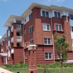 What was once an unsightly, L-shaped parking lot sandwiched between elegant, 19th-century homes is now a new off-campus residence for 150 students. Two five-level buildings are done up in deep red brick with crisp white accents, echoing the materials used in Jefferson’s famous Rotunda.