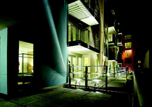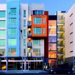 The newest resident in Oakland’s Jack London Square neighborhood makes a great first impression. Amid-rise luxury building with 70 condominiums and four live/work units on just under a half acre, it proves that high density and great visual impact aren’t mutually exclusive. Almost a full city block in length, the massing of the six-story project is broken up with colorful, boxy bays and generous glazing. The bold, modern look further enhances the once-gritty, now rapidly revitalizing community.