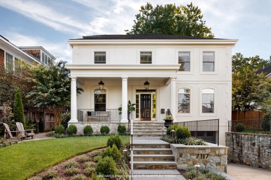 The challenge facing Hill & Hurtt Architects in the renovation of the Bethesda Residence also represented an opportunity: Take a dated, builder-grade home lacking in style and turn the home into a well-detailed space with classic sensibility with roughly the same layout. The team recognized the layout of rooms of the 1990s home was sensible but the interior living spaces lacked connection, scale, spatial clarity, and a consistent design language.
