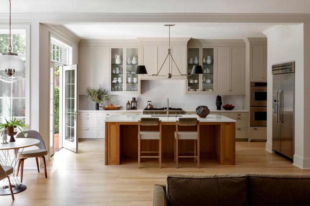 In the design process, the team focused on bringing down the scale of the house, improving the connections between the living spaces, and focusing on detailing. The design was achieved through additive and subtractive processes. Custom designed cabinetry and appropriate crown and trim profiles were added to the interior to clarify spatial relationships and diminutive connections between rooms were enlarged. At the same time, exaggerated moldings and overwrought details in the home’s interior were stripped away.