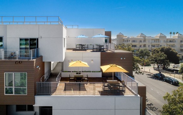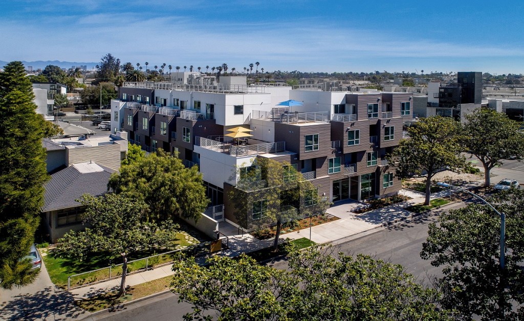 According to architecture firm DE Architects AIA, a top design goal for its Magnolia Villas project in Santa Monica, California, was to respect the context of the surrounding neighborhood. The affordable senior housing community, developed by nonprofit EAH Housing, is located within a four-story, mixed-use zone, but it directly abuts a low-rise residential zone with single-story, Craftsman-style bungalows and two-story apartments in the rear.