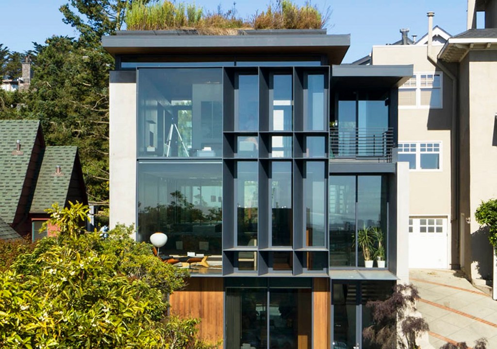 P erched on a steeply sloped site in the Corona Heights neighborhood of San Francisco, the dramatic three-story Terrace House began with simple roots. Local architecture firm Aidlin Darling Design was approached by the client—a growing family—looking to update the existing, two-story home on the lot by adding a third floor and integrating modern elements and sustainable design practices.
