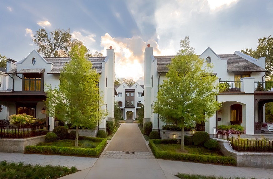 Located on a parcel that was once home to two interconnecting bungalows, the stately Park Lane enclave of four residences includes two detached single-family units on the street and two attached single-family units in the rear. The architect and the landscape architect collaborated on the site design to preserve the fabric of Atlanta’s historic Ansley Park neighborhood and develop the townhome project to look like it had always had a place there. Serving as the central spine of the project, the shared driveway is finished with exposed aggregate and cobblestone banding to complement the units’ exterior color palette.