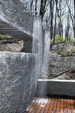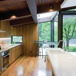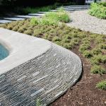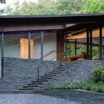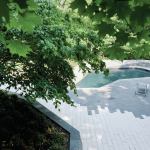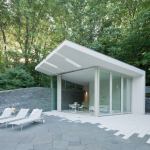 “Architects often think of buildings as an independent sculptural object that sits in landscape,” says Joel Sanders, AIA. “Our intention was to have the house recede, and what would catch your eye is this white lining that begins inside and goes down the hill.” Built on the solid foundation of a structurally unsound mid-century home, the remodel’s open-plan public zone has a dark shell with folded graphic elements—white concrete floors and countertops and a suspended drywall ceiling—that link the house, landscape, and pool house. Landscape architect Diana Balmori extended the concrete flooring outside as irregular pavers that interlace the landscape and wrap up over the pool house. “The stones in the swimming pool were set in the same way as the stone around the living-room fireplace,” she says. Our judges appreciated the “thoughtful way the materials go through the house” and its “appealing complexity and richness.”