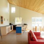 The way to do that, ironically enough, was to use less timber. “We’re doing more hybrid stuff now,” says Southworth, who describes his ideal as “a small, super-efficient house that uses the warmth of timber, but not in a way that is wasteful and redundant; a house that is resilient, that can go for long periods of time without extra inputs of energy.” If a client asks for it, Garland Mill will still build a full timber-frame sheathed with SIPs panels, but Southworth prefers using engineered lumber for a wall cavity that accommodates 12 inches of dense-pack cellulose insulation. His basic spec is R-40 at the walls (with no thermal bridging), R-60 at the roof, R-5 at the windows, R-20 at the basement walls, and R-30 under the slab.