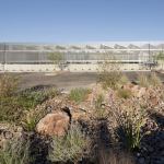 The project’s other big nod to sustainable design is the landscaping. Tucson gets just 12 inches of rain each year, so every drop is precious. The landscaped area is depressed by 2 feet to passively trap excess water, and there is a 7,000-gallon rainwater harvesting system for irrigation.