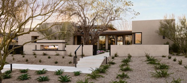 Rustic farmhouse and desert contemporary architectural styles complement the plan and surrounding environment, and are compatible with each other both in form and materials, in addition to strengthening the overall quality of the neighborhood design.