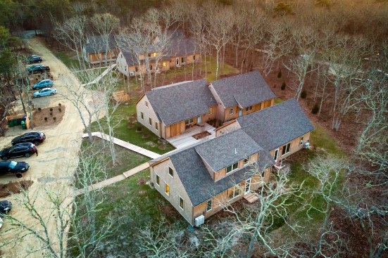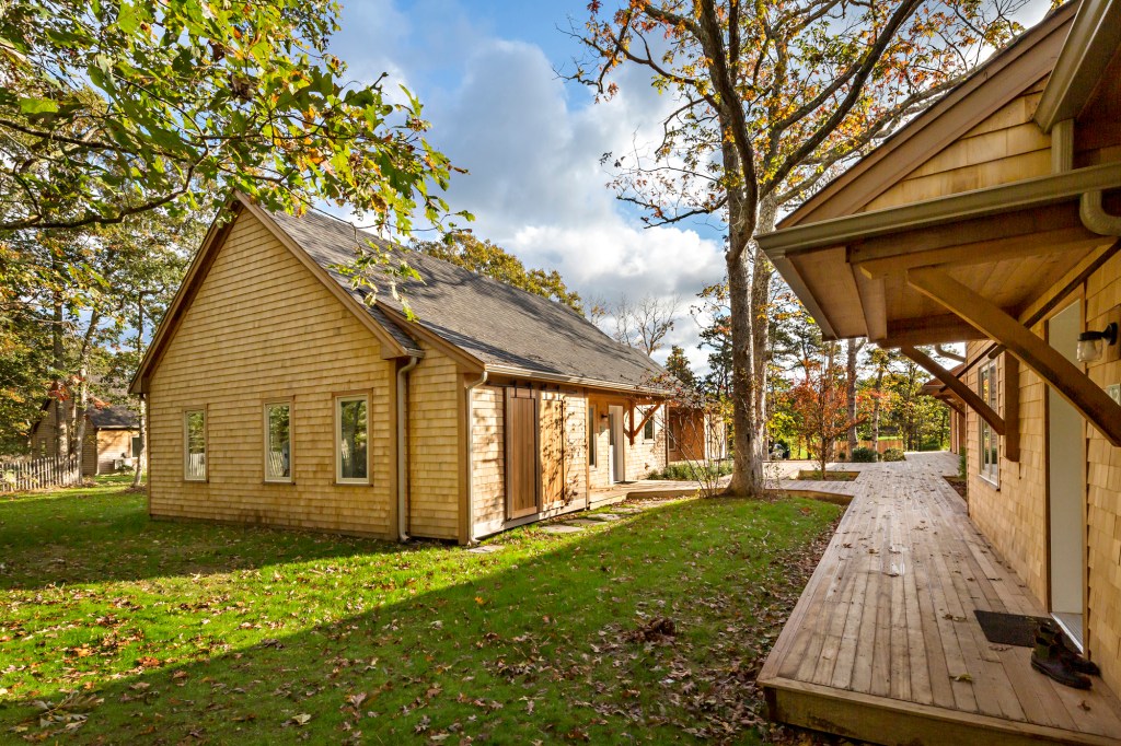To blend in with the surrounding Cape-style homes that are prevalent on the island, the firm outfitted each of the duplex pairs, located in four clusters, with cedar-shingled exteriors. Inside, the modest units include an open kitchen, dining, and living area, while the expanded deck walkways serve as a central gathering location for all residents.