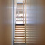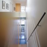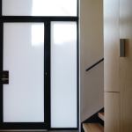 Second-floor bedrooms are as private as the main level is public, while a lower-level family room opens toward the rear, onto a subgrade courtyard. A monolithic millwork volume rises through all three floors, containing storage, kitchen, and service functions and separating living spaces from the linear stair that acts as the house’s primary circulation spine.