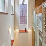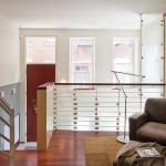 The renovated entry to this circa 1815 townhouse located in Boston’s North End neighborhood sports new windows as well as an open stairwell. Light now floods into the once windowless basement. Architect Treffle LaFleche of LDa Archtiecture & Interiors designed the space to keep the raised main floor but provide elegant access to a usable basement with a mudroom and playroom.