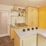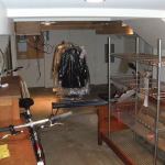 A folding side table adds extra island work space when it’s lifted. Hooks on the wall maximize storage. There’s even room for skis to rest, with a drain along the floor.