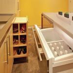 Storage options include pullouts for shoes and a refrigerator drawer.