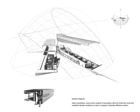 On Site “It took a village,” says Neal Schwartz of getting the board-formed concrete wall just right. In addition to figuring out where most of the vertical rebar could go to accommodate the horizontal acrylic strips, there was the pour: concrete, of course, has to be vibrated to get rid of bubbles. Panel wire was installed to hold the acrylic in place, and the wall was built in sections—shaken and constructed piece by piece.