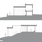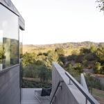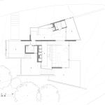 The building is equally expressive in its section, which descends in three levels from its entry to a two-story, glass-walled living room. “My intention was always to do something very dynamic with the landscape and to use the section,” says Joseph, who describes the basic scheme as “a stair moving toward the view.” The resulting grandstand arrangement provides elevated views from every space in the house.