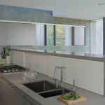 Bathroom fittings: Kohler, www.kohler.com; Bathroom fixtures: Dornbracht, www.dornbracht.com, Toto USA, www.totousa.com; Countertops: Caesarstone, www.caesarstone.com; Dishwasher: Bosch, www.bosch-home.com; Exterior siding: VM ZINC, www.vmzinc-us.com; Garbage disposer: InSinkErator, www.insinkerator.com; Kitchen fittings: Kohler, www.kohler.com, Julien, www.julien.ca; Lighting fixtures: iLED Lighting, www.iled-lighting.com, DGA, www.dga.it, BEGA, www.gega-us.com, USA Illumination, www.usaillumination.com, Steng, www.steng.de, Pegasus Lighting, www.pegasuslighting.com, Lightyears, www.lightyears.dk; Oven: Thermador, www.thermador.com; Paints/stains/wall finishes: Benjamin Moore, www.benjaminmoore.com; Refrigerator: Sub-Zero, www.subzero.com; Roofing: Duro-Last, www.duro-last.com; Solar energy system: SunPower, www.sunpowercorp.com
