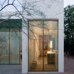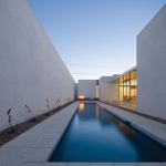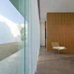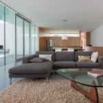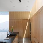 Commissioned by clients relocating from the East Coast, the house carefully filters input from the outside world, buffering the sights and sounds of the street with a suite of office and guest spaces that spans the front of the building. “That sets up the foil for this ‘wow’ moment,” Kothke explains. A short entry hall opens onto the house’s main living space, a brilliantly daylit great room that incorporates an elegantly austere side courtyard and lap pool. “Once you’re inside,” he says, “it’s about the sky and the pool and the changing light conditions.”