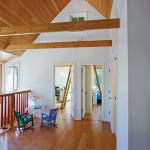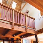 A band of dormer windows light the play loft and living spaces below. With minimal BTUs needed to heat the well-insulated house, the radiant tubing is limited to area rug locations, providing less heat more efficiently at a slightly higher temperature.