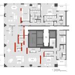Getting it Done Despite the existing floor’s uneven surface, the wood walls have a ½-inch reveal between the floor and ceiling. “The reveal was important to show off the wood, and how it occupies and divides the space,” Webber says.