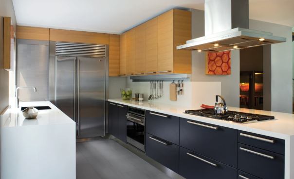 Bathroom fittings: Kohler Co.; Bathroom fixtures: Hansgrohe, Vola A/S; Bathroom cabinets: AlterECO; Cooktop, oven/range: Wolf Appliance; Countertops: CaesarStone USA, Cosentino USA (Silestone); Dishwasher: Bosch USA; Doors: NanaWall Systems, Simpson Door Co.; Exterior siding: James Hardie Building Products; Flooring (carpet): J+J/Invision; Flooring (ceramic tile/stone/concrete): GranitiFiandre; Flooring (wood): Smith & Fong Co.; Garbage disposer: In-Sink-Erator; Hardware: Omnia Industries; Insulation: Owens Corning; Kitchen cabinets: Arclinea Arredamenti S.p.A.; Kitchen fittings and fixtures: Blanco America; Lighting fixtures: Arclinea Arredamenti S.p.A., Axo Light SRL, Permlight Products; Paints/stains/wall finishes: Benjamin Moore & Co.; Refrigerator: Sub-Zero; Roofing: Johns Manville; Skylights/roof windows: O’Keeffe’s; Windows: Bonelli Enterprises