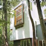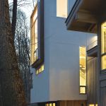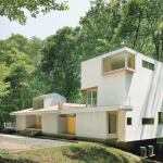 The owners of this house loved the tree-filled property, but the original cabin-like house didnt reflect their style. For the renovation, they turned to KUBE architecture, a Washington, D.C., firm known for its modern aesthetic. The homeowners original plan was for a small master bedroom addition. However, the project evolved to a larger tower addition with a master suite and a library/living area. A deck off the tower connects the addition to the original house.