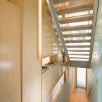 The tower has commercial windows in different shapes and sizes, which provide a connection to the outdoors and provide the owners with differing views of the landscape as they walk up and down.