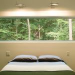 The view through this master bedroom window resembles a painting of a forest, architect Janet Bloomberg says.