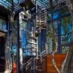 To respect the size of area homes yet make the house fresh looking, Grable’s firm kept the home mostly one story, and added a bit of edge with steel arbors and overhangs that shade big windows to reduce solar gain. Judges liked the home’s clean, simple palette inside, and outside, they appreciated all the spaces for the homeowners to relax outdoors. Grable calls this project his “Green Lantern. “With lights on at night,” he says, “it reads like a lantern in the landscape.”