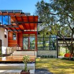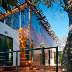 In one of San Antonio’s, oldest neighborhoods, architect and developer John Grable, FAIA, salvaged 45 percent of a 1948 house because of his client’s commitment to conservation and green building. At the same time, a contemporary home was the aim. The team developed a program that met the challenges posed by the site challenges and client requirments. They saved the original kitchen at the center of the house but remodeled it. They reused wood where possible, stepped new rooms down the slope to save its heritage oaks, and maintain the scale of the neighborhood. They showcased views through big modern glass panes, opened interior rooms to one another and the outdoors, and constructed a new small second level with party space and two outdoor entertainment areas—one with a wood deck with fireplace and a second with a green-roof deck and hot tub.