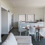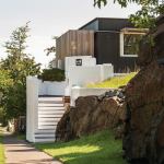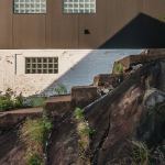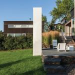 Rooted in ledge rock and floating beyond its old footprint, this house evokes Italian hill town construction. “We’re building on top of the ruins of the previous culture, magnifying the things they built that could be kept permanent,” says David Salmela, FAIA. In fact, Italian immigrants once lived on this land, part of an urban development project overlooking Duluth and the shipping harbor. Salmela saved the existing 1888 house’s foundation, retaining walls, and site stairs (all stained white), adding simple masonry piers to support the addition.