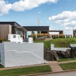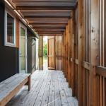 Glass walls, slatted pergolas, and diagonal bracing read as faceted layers in the open-plan house, which is clad in maintenance-free Richlite and cedar, like the surrounding homes. “It’s a raggedy Modernism, almost like an improvisation on a structure,” a judge said. “It’s rambling but pure in plan.”