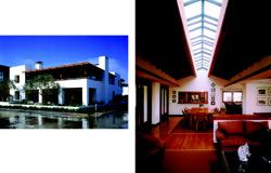 LOCATED, AMONG A COLLECTION of funky houses, restaurants, and shops on Balboa Island, this retirement home offers its residents a casual beach-house feel with inviting spaces for visiting children and grandchildren. George Bissell, the project’s architect, had to deal with a small lot size, minimal setback, and a two-story height limit, but he still managed to pack in 4,800 square feet of living space and a two-car garage. To capture the California beach lifestyle, he used simple forms with exposed fir framing.