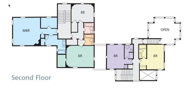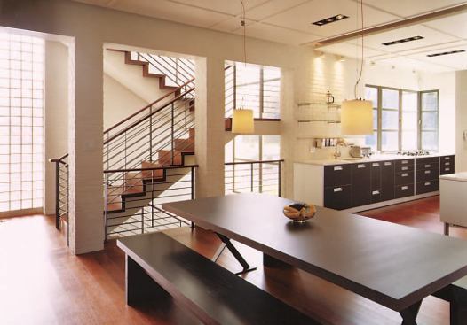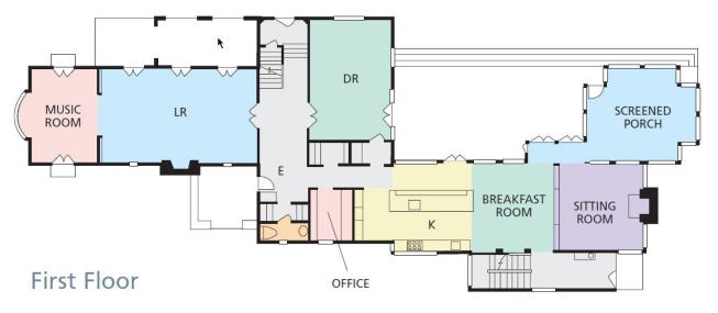 With minimal disturbance to the plan of the main house, the addition provides a greatly enlarged kitchen space, informal dining and sitting areas, and a dramatic glass-box formal dining room at the first floor. At the second floor, a two-bedroom guest suite accessible only via its own back staircase maintains the privacy of the family, whose bedrooms occupy the second floor of the main house.