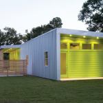“It’s an interpretation of a shotgun house, which is a very efficient vernacular typology,” noted one of our jurors. Architect David Baird devoted house-width rooms to a living room/kitchen at the front of the building and a master bedroom at the rear. Between those two bookend spaces, secondary bedrooms, baths, and a laundry stack up along a side hall. High ceilings and a polished concrete floor facilitate cooling; a wooden privacy screen provides shade at the long side porch, while allowing breezes to blow through.