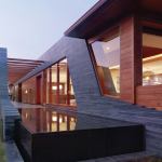 Resources: Bathroom cabinets: Salem Wood Products; Bathroom fittings: Boffi, Kohler; Bathroom fixtures: Duravit, Vola, Agape; Cooktop: Miele; Countertops: Stone Source, Boffi; Dishwasher: Hobart; Doors: Stilewood; Exterior siding: Terra Mai; Flooring: Floor Gres, Stone Source, International Flooring; Garbage disposer: InSinkErator; Hardware: Rixson, Baldwin; HVAC equipment: Daikin AC; Kitchen cabinets: Boffi; Kitchen fittings: Duravit, Kohler; Kitchen fixtures: Duravit; Lighting fixtures: Moooi, Twentieth, No. 8, Bega, Lucifer; Oven: Miele; Paints/stains/wall finishes: Benjamin Moore; Refrigerator: Gaggenau, Sub-Zero, Scotsman; Solar energy system: Revolisun; Windows: Stilewood