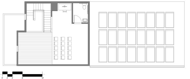 The upper level contains a lounge, computer lab, and seminar and… The upper level contains a lounge, computer lab, and seminar and flex space. Low-cost memberships encourage students who graduate from the Stax Music Academy across the street to use the recording space and experiment musically without great expense.