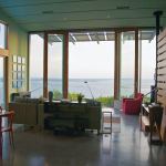 The blufftop site’s view down onto the lake below helped dictate the home’s orientation and glass-filled southern façade. A south-facing overhang covered with solar panels wards off the harsh sun, while generating enough energy to power the 1,400-square-foot cottage. And a rainwater collection system and xeriscaping provide additional resource-conserving measures. While not technically off the grid, the house is self-sufficient, just as Lawrence intended. “The clients wanted it to not relate to the main house,” he says. “They wanted it to feel like another world.”