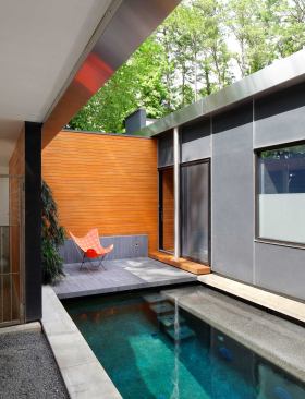 Jury Selections – First Place: Banbury House, Raleigh, N.C. Architect: John Reese, AIA, LEED AP, Weinstein Friedlein Architects Builder: Alphin Design Build Architect’s description: The owners sought a minimalist, private, and resilient environment for themselves and their houseguests that integrated modest interior spaces with an open-air exterior, including a private courtyard, lap pool, and cabana/carport. Jurors’ comments: This house displayed great rigor, from concept to detail. There is a compelling consistency to the architect’s thought. The sequence of spaces from outside to inside is choreographed with admirable restraint, using a few well-chosen materials to great effect. Layers of transparency make the house full of surprise and delight.