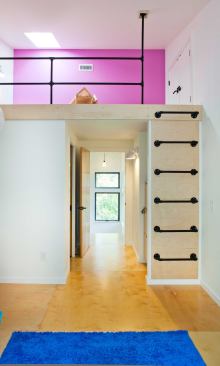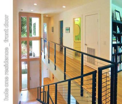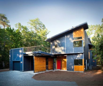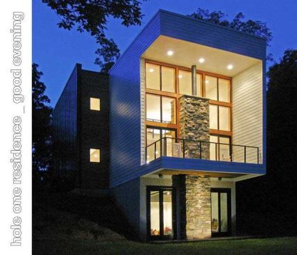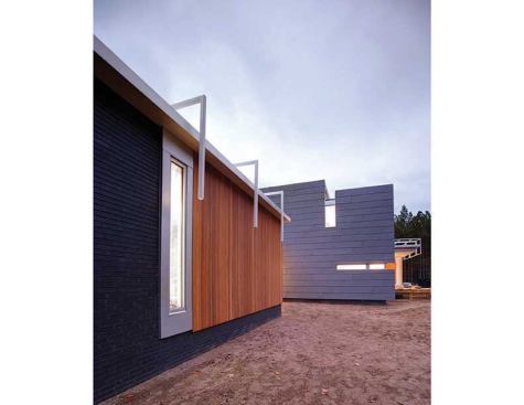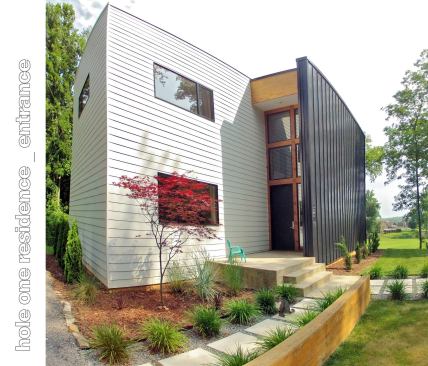 Public Voting Winners – First Place: Hole One House, Clemmons, N.C. Designer: Adam Sebastian Builders: Ken McDaniel & Adam Sebastian Designer’s description: Located in the Yadkin River Valley near Clemmons, N.C., Hole One House features a passive solar design and is just 20 feet wide by 67 feet long. Designed to be as hyper-efficient as the budget would allow—$85 per square foot—the home features 2×6 and 2×8 wall construction, precast concrete basement/foundation walls, and spray foam insulation, in addition to highly efficient windows, appliances, and mechanical systems. The strong backward C-shaped form that the front of the home projects is intentional and serves several functions: to mitigate the summer sun (roof), to shield the arrant golf ball from hitting south-facing windows (wall), and to create a cantilevered balcony on the exterior (floor).