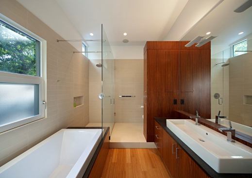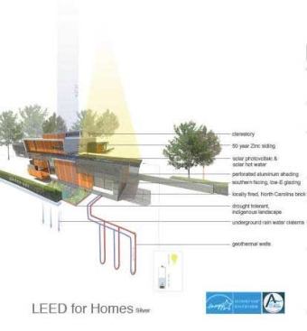 Public Voting Winners – Third Place: Graham Street Residence, Raleigh, N.C. Designer/Builder: Will Alphin, Alphin Design Build Designer’s description: An overarching goal was to have the new home minimize its environmental impact, both during construction and over its planned 100-year lifetime. Sustainable, energy-efficient systems were incorporated into every aspect of the house, including the design, site orientation, mechanical systems, and materials. The building seeks to simultaneously fit within the context of the 1950s neighborhood, embrace the diverse influences of the Triangle area, utilize vernacular style and strategies appropriate for the Southern climate, and express our modern era of sustainability. Physically and metaphorically, the house carefully “hugs” a mature oak tree on the south side.