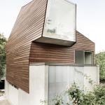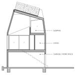 Stacking a guest apartment atop an existing garage, this backyard structure adds a workshop, overflow living space, and solar electricity to a maxed-out family home. The building’s angular, vertically oriented envelope works within the site’s constraints—which included a large shade tree—to secure views and optimize solar exposure. Rainscreen siding shades the exterior, while a remote-controlled skylight promotes stack effect–driven passive cooling. Our jury noted the project’s positive effect on its site. One judge said, “It activates the gardens in a very sculptural way.”
