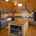 Guests are greeted by a shingled cottage exterior with hints of mountain lodge in the exposed rafter tails and dark-green painted zigzag trim that carries throughout the house. The interiors also attracted kudos from the judges, who applauded their balance of openness and warmth. Liberal use of natural wood is tempered by lighthearted detailing, numerous painted built-ins, and large openings that let daylight flow freely from room to room. “We used painted trim to introduce color,” explains Albert, “and big windows to get a lot of light.”