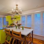 Part of a whole-house renovation, this kitchen and adjacent laundry room injected bold color and space-saving functionality into a challenging footprint.