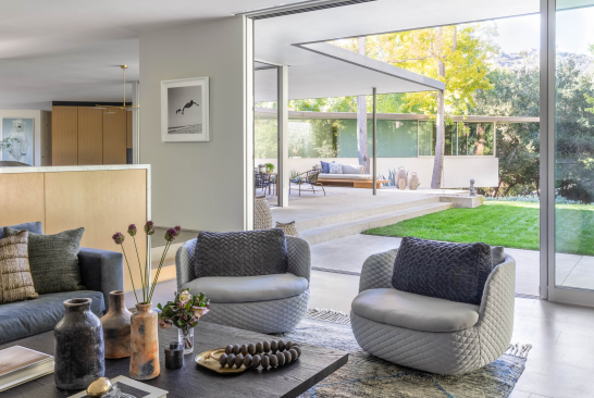 A remodel and two-story addition to the midcentury Oakdell Residence updated the design style of the Studio City, California, home and added over 1,800 square feet to its footprint. At the heart of the 1957 home’s original design was a sawtooth floor plan that offered views in multiple directions but also was congested with limited connectivity.