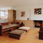 Steven Ehrlich, FAIA, saw this project as a rescue mission. He had two objectives: to preserve the legacy of Rudolph Schindler, who designed the house in 1939, and to make it as green as possible. Ehrlich reconstructed built-ins and furniture, replaced the kitchen, bath, and asbestos ductwork, and opened the kitchen to the living room. He also installed LED lighting, waterproofing membranes, and an efficient HVAC system. Wood window frames were restored and fitted with tempered glass.